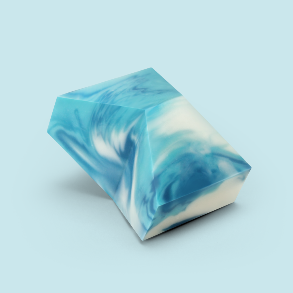 色液皆以橄欖油及天然色粉調製而成,沒有化工原料的危害。依照不同款式以手工調色,直到澆灌進模具的當下才進行混色,因此每個皂體皆有獨一無二的自然混色紋理效果,如同上了油彩般的現代雕塑,為淋浴空間增添視覺美感。