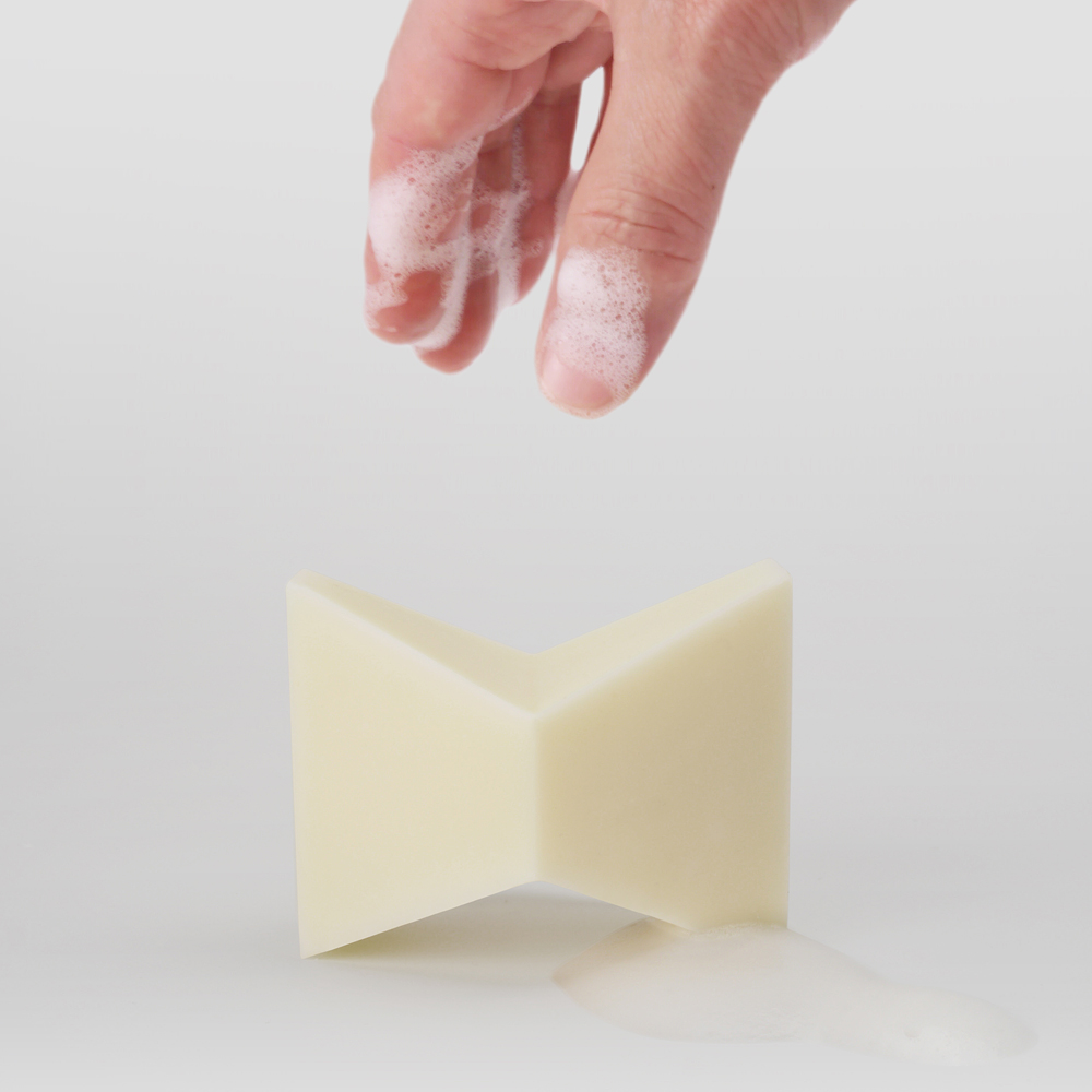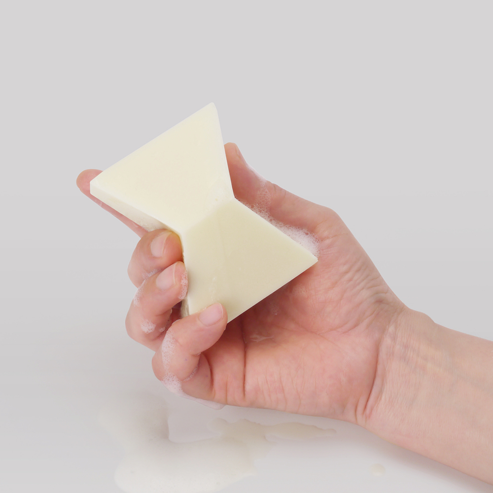 延續皮件的美學而發展出SOLO獨特如蝴蝶結般的造型,具有功能性的多角面設計,即使濕手也可以牢握在掌心不滑脫;大塊面可以與布料/海綿快速搓揉產生綿密的泡沫,邊角也可以針對衣物上的髒污加強搓洗。
