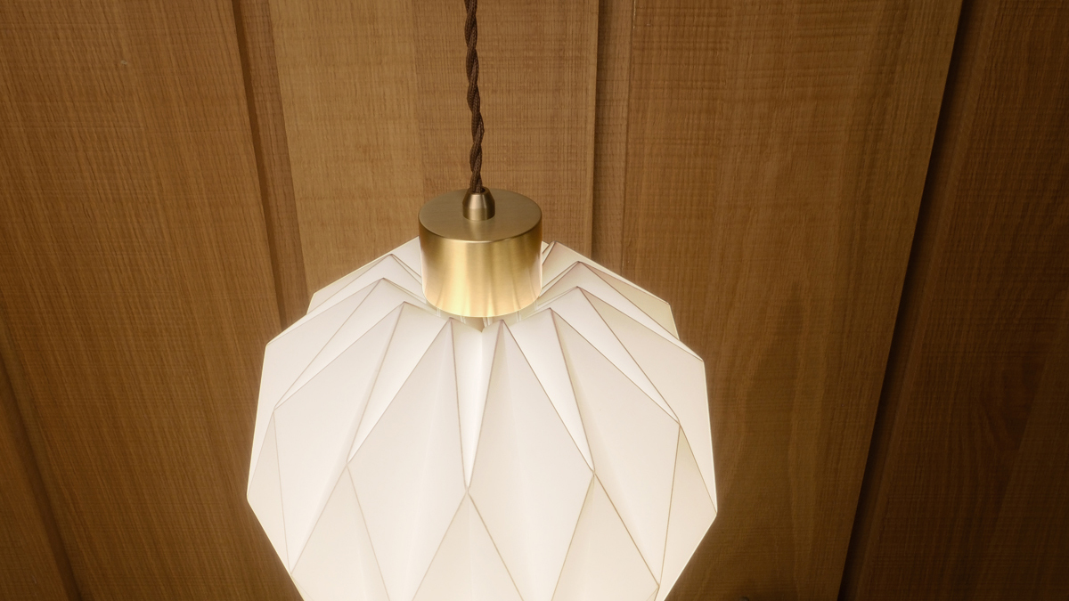 燈罩是從單一片平面的聚丙烯塑料板,以手工逐一沿著每條折線反覆凹折,方能製成一個美麗的多角面球體,其原創的摺線版型及獨特的工法呈現出與眾不同的造型美感,是無法以模具或其他機械生產方式所取代。以皮件的縫製技巧將燈罩以手穿針引線的方式做縫合,如此費工的手法就是為了讓整個球體難以看出接縫或重疊黏合的暗影,真正達到360度均勻透亮無暗影死角的極絕佳效果,除了觀賞無角度的限制也讓擺設更自由隨興。