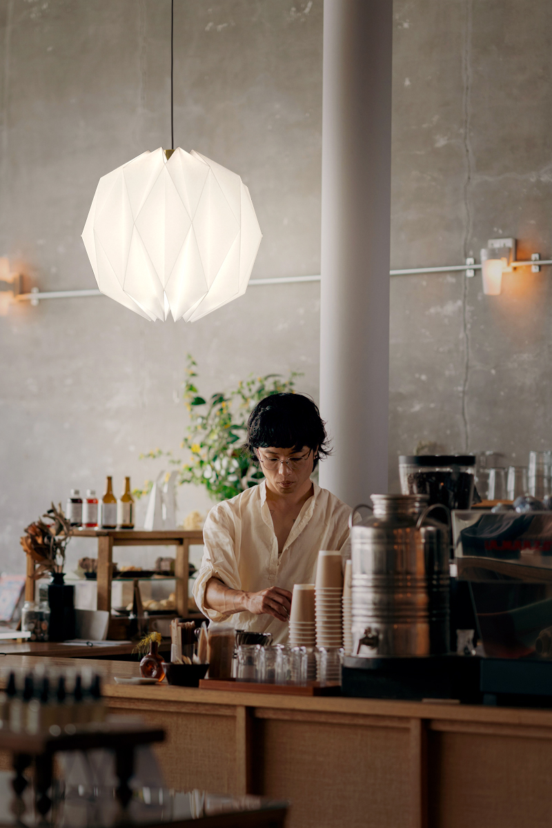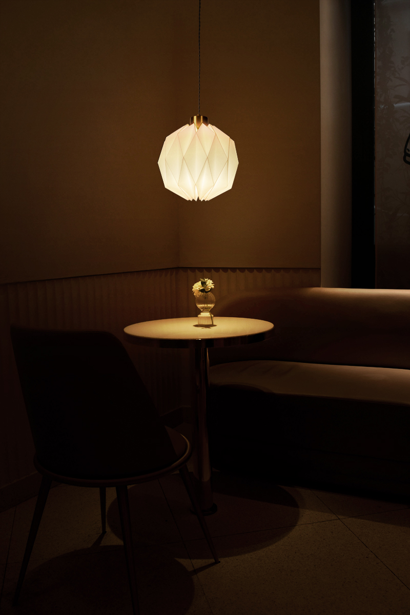STELLAR is versatile pendant light which can be used in residential or commercial spaces. It can be installed on both sides of the bed or above the dining table. It is suitable for commercial spaces such as cafes, dessert shops, bookstores, restaurants and pubs, B&Bs or public spaces. STELLAR is always the focal points no matter it’s singular or multiple setup. Even when the light is off, it looks like an origami sculpture with fascinating shades and reflections. When the light is on, it diffuses warm and penetrating light through the ridges like a glowing stellar.